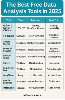 If you’re stepping into the world of data—whether as a student, analyst, startup founder, or small business owner—you don’t need expensive software to begin. In 2025, the ecosystem of free (or freemium) data tools is richer than ever. These platforms and libraries allow you to clean, analyze, visualize, and even model data without paying upfront. Below are some of the top free data analysis tools you should try this year.