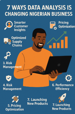 Nigeria’s business landscape is evolving faster than ever. With rising internet adoption, smartphone use, and digital services, companies are sitting on a goldmine of data. The ones that seize it are gaining competitive edges. Below are seven real ways data analysis is reshaping business in Nigeria—and how your organization can ride the wave.
